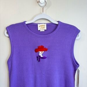 NWT Vintage Tia Designs Red Hat Lady Sleeveless Sweater Purple & Red Size Large