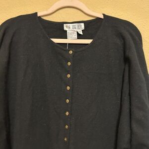 NWT Vintage Together Sweater Womens XL Black Oversize Dolman Henley Lambswool