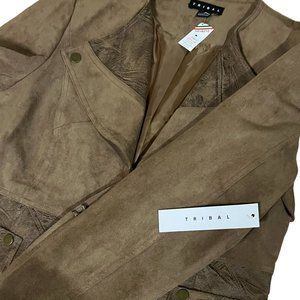 NWT Vintage Tribal Faux Suede and Leather Fully Lined Coat in Butterscotch, Sz 8