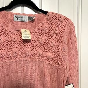 NWT Vintage Western Connection Crochet Knit Sweater M Retro Pink Cottage Prairie