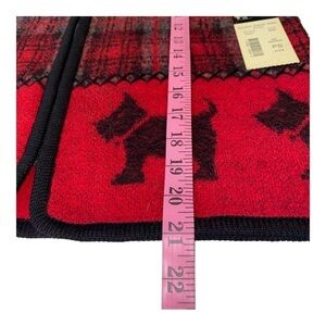 100% boiled wool red, black and gray zip front sweater vest with Scottish Terrier Scottie dogs along the bottom.