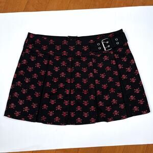 New With Tags Vintage Y2K Tripp NYC Red Skull Belted Black Mini Skirt Size Medium NWT