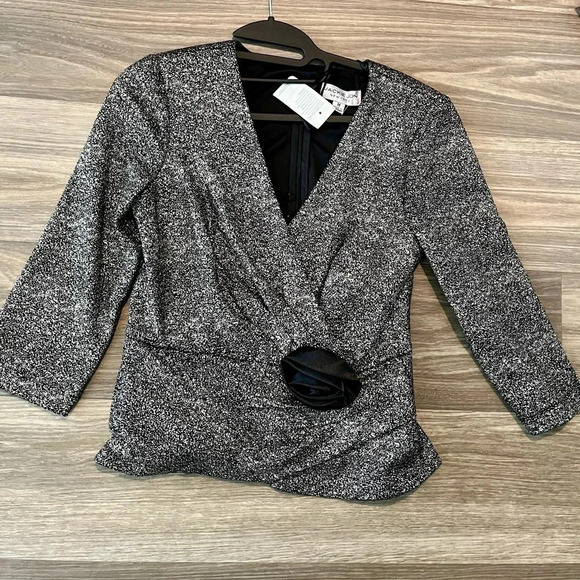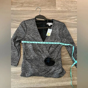 NWT Vintage black bubble top, faux wrap top, black rose, sequin top Jackie Jon