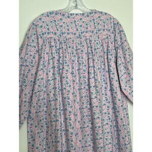 Charming vintage exclusively for Lord & Taylor nightgown in a delicate pink and blue floral print. Made from soft 100% cotton flannel with a feminine lace yoke, ruffle trim neckline, four button down chest, and puff sleeves with gathered cuffs. Features a flowing full-length silhouette and original 1980s Lord & Taylor paper tags still attached. NewOldStock