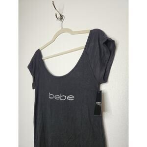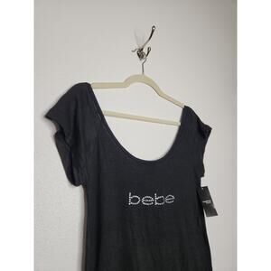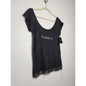 NWT Vintage y2k BEBE Sleepwear Spellout Beaded McBling Black Lace Shirt Small