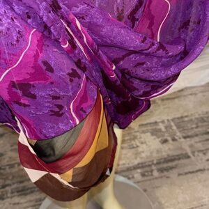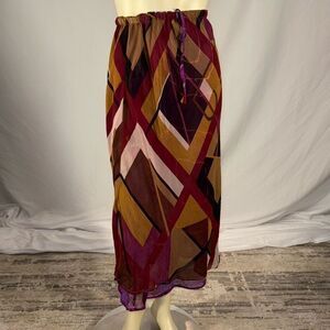 New tags attached 90’s double layered sheer chiffon skirt. Elastic drawstring waistband. Each layer has a different pattern. under layer peaks through top layer. Tags attached. Excellent vintage condition. Tags marked M/L