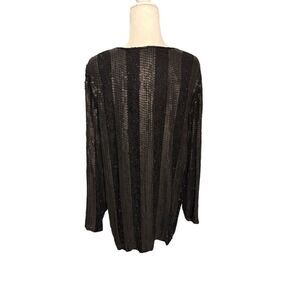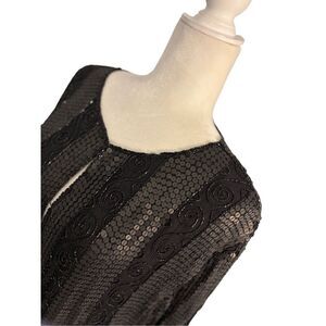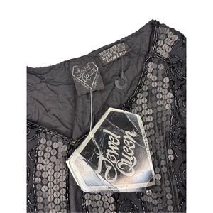 NWT vintage Jewel Queen black sequined long sleeve jacket with silk lining and hook and eye closures.