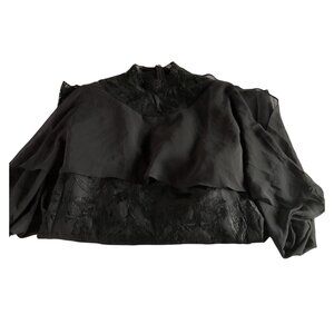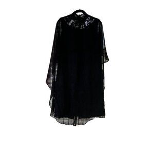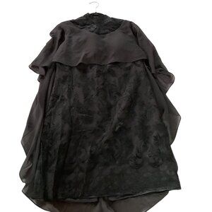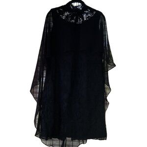 NWT Vintage-Style Black Lace Overlay Dress Sheer Cape High Neck Floral Embroider