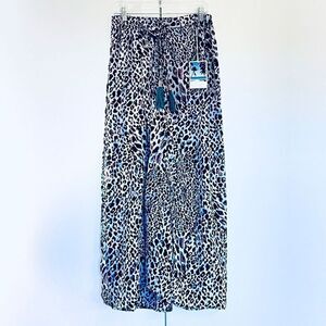 NWT Violet Sky Sz M White Sheer Animal Print Open Wide Leg Cover Up Beach Pants