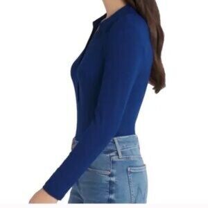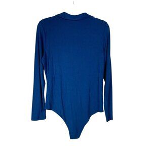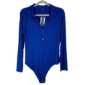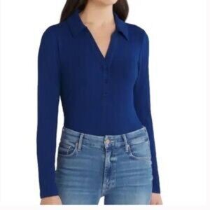 NWT Violets&Roses Blue Ribbed Long Sleeve V-Neck Stretchy Body Suit Polo Size L