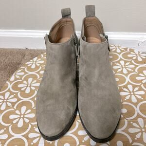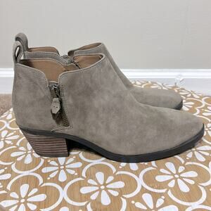 NWT Vionic Cecily suede nubuck leather side zip ankle booties in Stone, Size 7. New with sales sticker, no box!