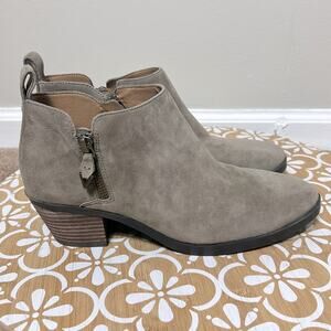 NWT Vionic Cecily suede nubuck leather side zip ankle booties in Stone, 7.5