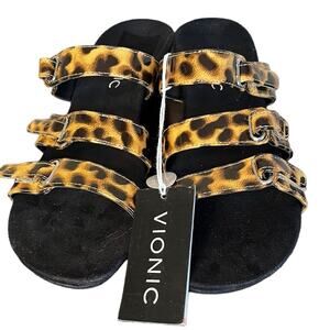 NWT Vionic Leopard Triple Strap Park Dwyn Orthotic Wedge Sandal Size 7