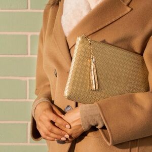 NWT Virginia Wolf Mimi Woven Faux Leather Pouch