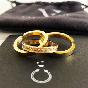 This sold out Vita Fede ring features interlocking, detachable pieces; one ring is adorned with Swarovski crystals. Can wear all three rings separately, stacked, or interlocked with two or all three. Great with which to travel as 1 ring gives many options!