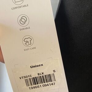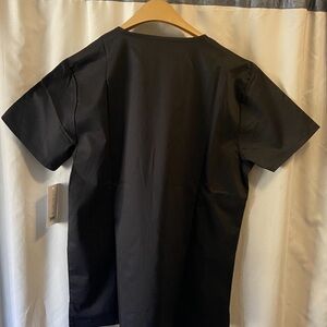 New with tag, Vital Threads size small classic black v-neck short sleeve scrub top. Top features two front pockets.