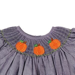 #vivelafete #purple #pumpkin #gingham #dress #smocked #handsmocked #thanksgiving #fall #bishop #new #nwt #giftit