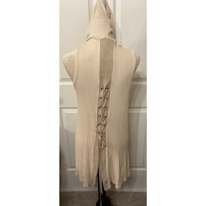 NWT Vocal Women's Cream Waffle Knit Hoodie Vest with Lace Up Back Details, S