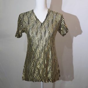 Unusual short sleeve top from a brand called Volcano from Paris, France. Strangely, the tag is written in Turkish. I will paste the translation in the comments since it is long. Material is stretchy. It is a mesh with an embroidered design. I do not see a size tag so please check measurements. It looks small. Also I do not know the fabric. It does not say.
