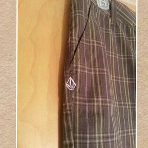 NWT Volcom Capri's. Size 3. Olive plaid.
