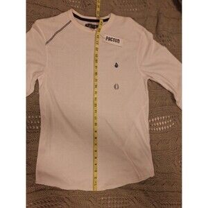 This NWT Volcom long sleeve t-shirt for men in size S features a classic white color with a logo accent. Has some small spots that will probably come out when washed. See pictures. Made from breathable cotton knit fabric, this crew neck t-shirt is machine washable and suitable for all seasons. With a regular fit and easy care features, this shirt is a stylish and comfortable choice for any man looking to add a touch of classic style to their wardrobe.