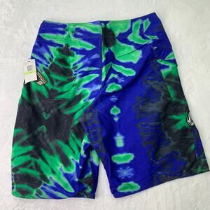 NWT Volcom Mens Size 30 Green Blue Black Tie Dye Swim Shorts Board Shorts Trunks
