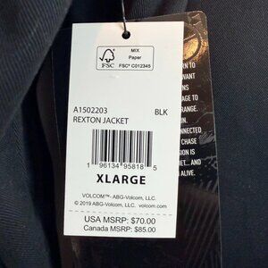 NWT Volcom Rexton Hooded Jacket Men's Size XL Black Grey Casual Streetwear