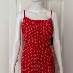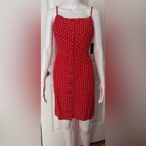 Spaghetti strap mini sun dress from Volcom. Button up front. Adjustable straps. Slim cut. Metal logo tag to upper back. NWT no flaws. Always open to offers! Bust approx 20” across. Pit to hem approx 27”