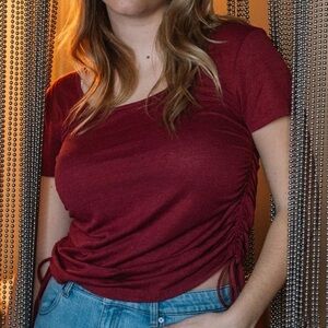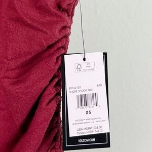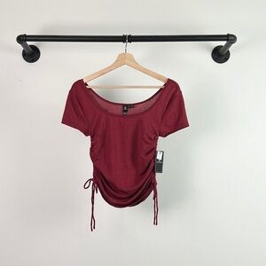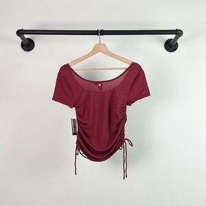 NWT Volcom Shore Shook Ruched Side Short Sleeve Top Maroon