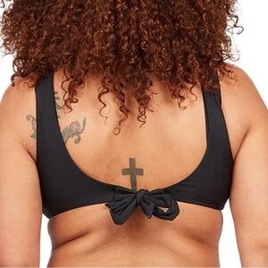 NWT Volcom Simply Seamless Scoop Neck Tie Back Bikini Top in Black