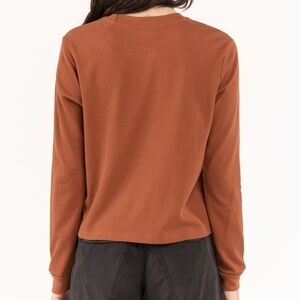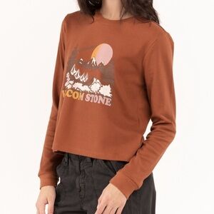 NWT Volcom Stone Thermality Long Sleeve Thermal Knit Graphic Top Dark Clay