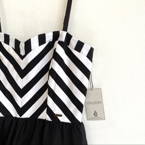 NWT VOLCOM Women Black and White Mini Spaghetti Straps Dress