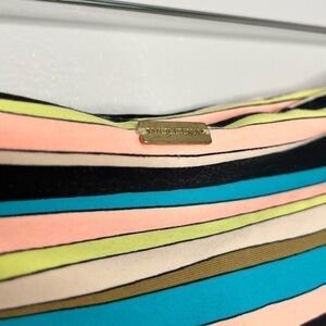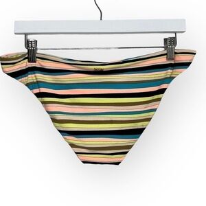 Volcom women’s salty air full bikini bottom in blue, black, pink and yellow stripes. Size XL.