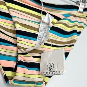 NWT Volcom Women’s Salty Air Full Bikini Bottom Yellow Pink Blue Black Stripe XL