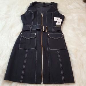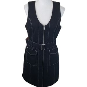 NWT! Volcom XS Black Denim Front Zip Belted Dress