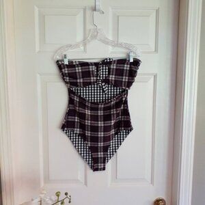 Volcom Plaid Attitude reversible bandeau swimsuit, check print