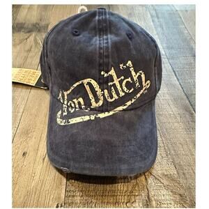 NWT Von Dutch Strap back Hat Washed Blue Distressed Rips Unstructured Dad Cap