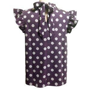 NWT Voy Purple Polka Dot Ruffle Sleeve Top W/ Back Neck Tie Size SMALL