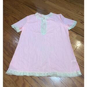 Vtg 50s 60s Pink & Ivory Lace Trim Van Raalte Nylon Nightee Size Small.