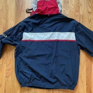 This is a vintage color blocked Nautica sailing windbreaker jacket. Colors are still vibrant.
