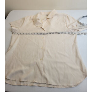 NWT Vtg Evan Picone Ivory 100% Silk Short Sleeve Button Up Shirt Women's Size 12