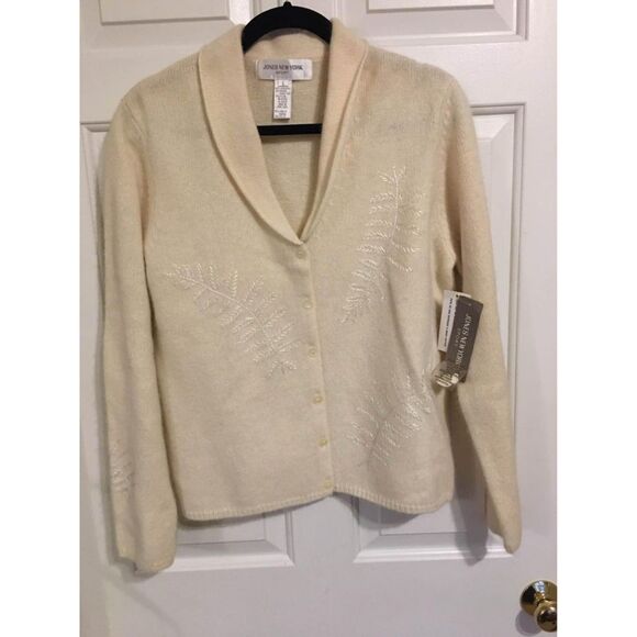 NWT Vtg Jones New York Lambs Wool Blend L Embroidered Cozy Fall Holiday Cardi