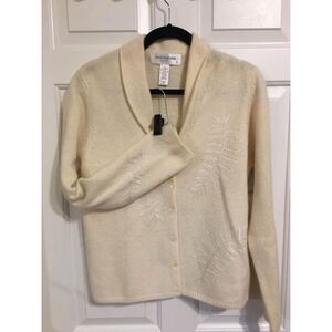 NWT Vintage Jones New York Lambs Wool BleCozynd L Embroidered Cozy Fall Holiday Cardi