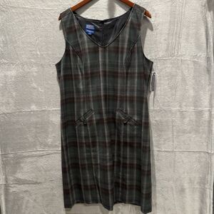 NWT Vtg Pendleton 100% Virgin Wool Plaid Shift Dress Size 18 Green Black with pockets