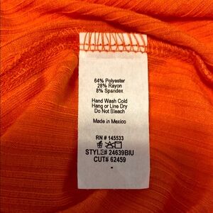 - Casual, Soft, Drapey, Ruffle, Ribbed, Feminine, Vibrant, Color Pop, Tangerine