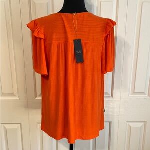 NWT W5 Tangerine Orange Ruffled Flutter Short Sleeve Extra Large Blouse