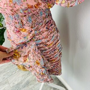 NWT WALTER BAKER FLORAL FITTED SMOCKED WAIST RUFFLE PINK PRIMROSE CHIFFON DRESS