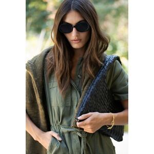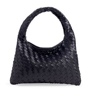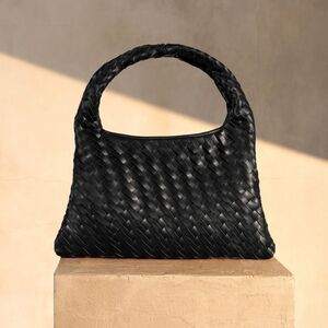 Sleek yet slouchy, this woven vegan leather bag makes achieving that effortless model/celebrity off-duty style so simple—plus it pairs perfectly with all your fall favorites.