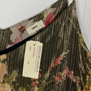 NWT WARM Dress 0 Silk Slip Gold-Shimmer-Glitter-Stripe Floral-Sheer-Overlay Lind