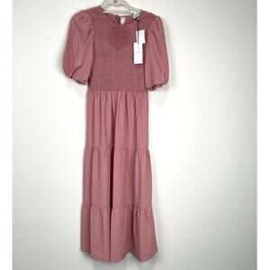 NWT WAYF Camden Smocked Puff Sleeve Tiered Maxi Dress